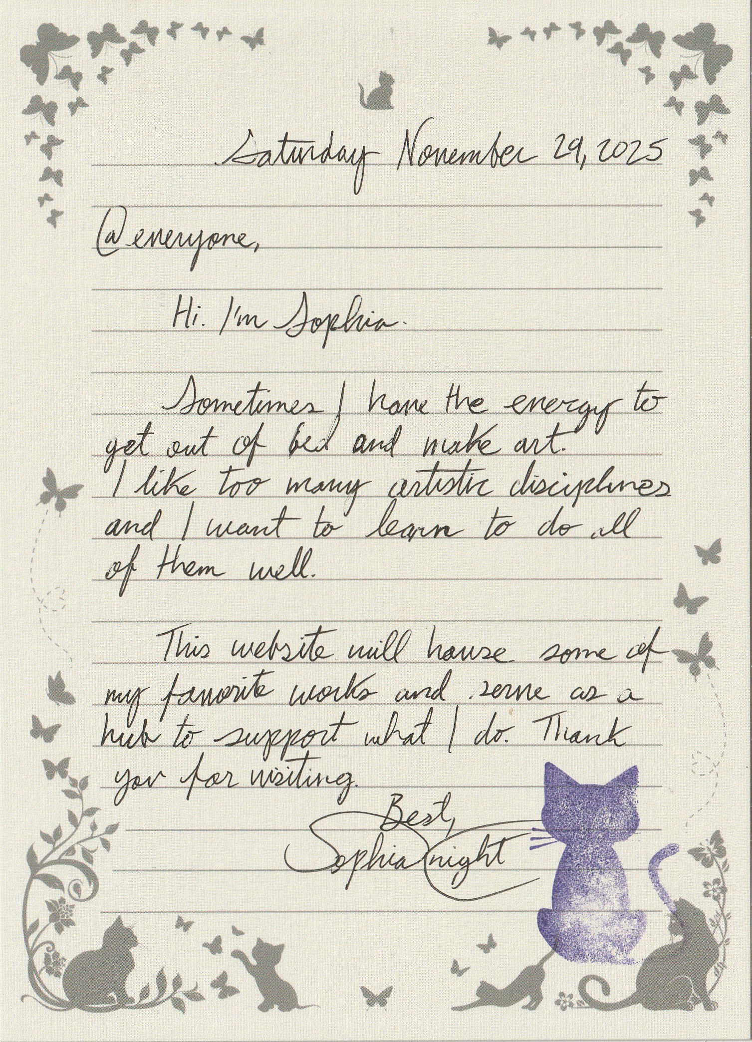 Sometimes I have the energy to get out of bed and make art. I like too many artistic disciplines and I want to learn to do all of them well.